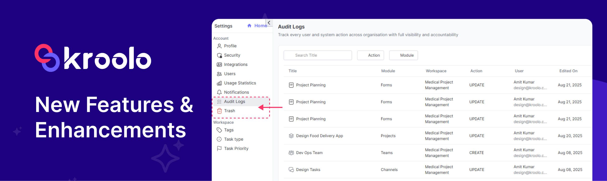 Timesheet Audit Logs – Audit logs now track every task entry in timesheets for better visibility.