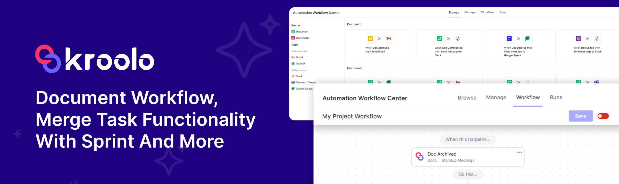 Doc Workflow and Automations – Configure steps and triggers to automatically route documents through creation, review, approval, and publishing, reducing manual handoffs and cycle time. It means actions like assigning reviewers, sending reminders, updating statuses, and archiving can be automated through rules rather than ad-hoc efforts.