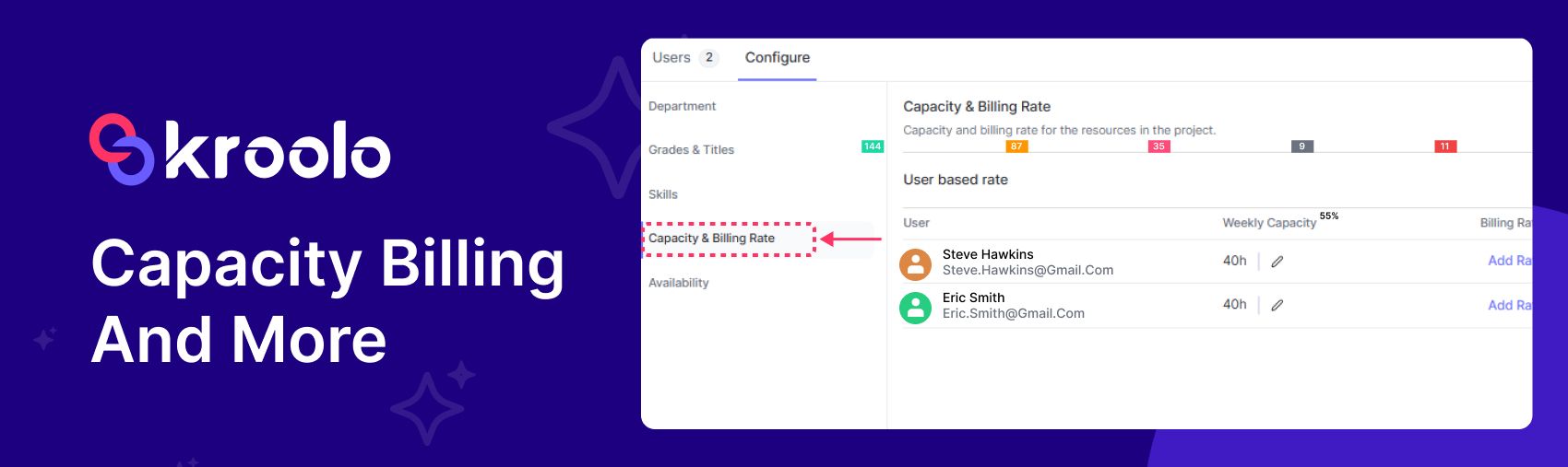Settings: Capacity availability enhancements.