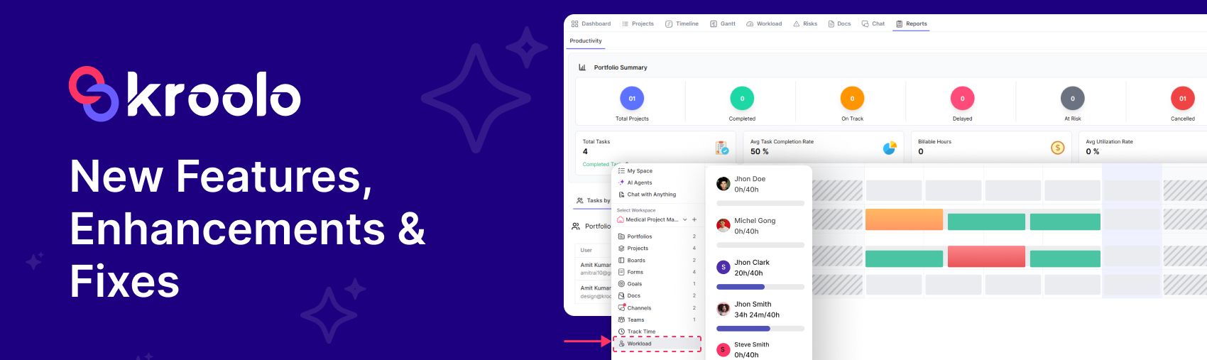 Workload changes ensure better tracking and distribution of tasks across team members, improving balance and efficiency. The leave and holidays bug fixes resolve issues where absences weren’t correctly reflected, so workload calculations now align accurately with team availability.