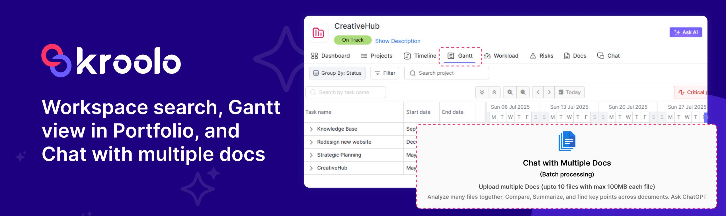 A revamp of the AI assistance feature, known as "Ask AI," was implemented to provide enhanced and more intelligent support within the Project, Board, and Portfolio sections. This upgrade delivers smarter, more context-aware insights to users, empowering them to make better-informed decisions at every level of their workflow. With the improved AI, users can now receive tailored recommendations, real-time analysis, and actionable suggestions specifically aligned to their individual projects, boards, or portfolio overviews. This improvement not only streamlines the decision-making process but also increases overall efficiency by delivering relevant guidance exactly when and where it’s needed.